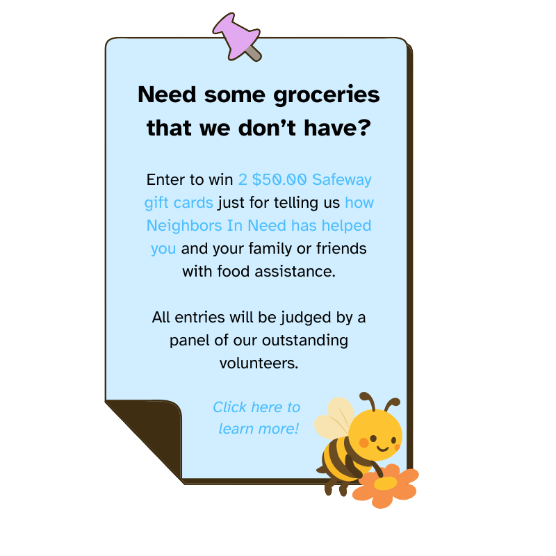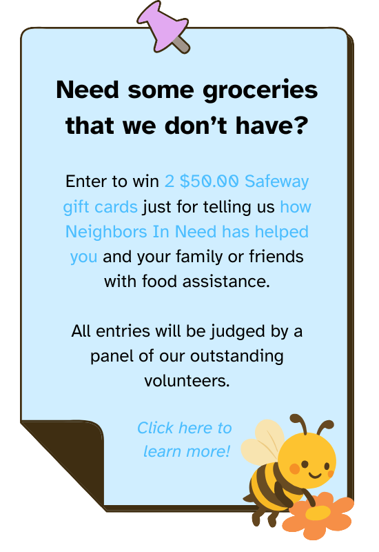 Every month, we send a newsletter out to our community. As written by the Director of Neighbors in Need, it features food bank updates, seasonal recipes, local event postings, and much more! You can start receiving our monthly newsletter by providing your name and email address below.